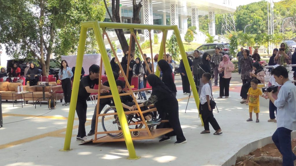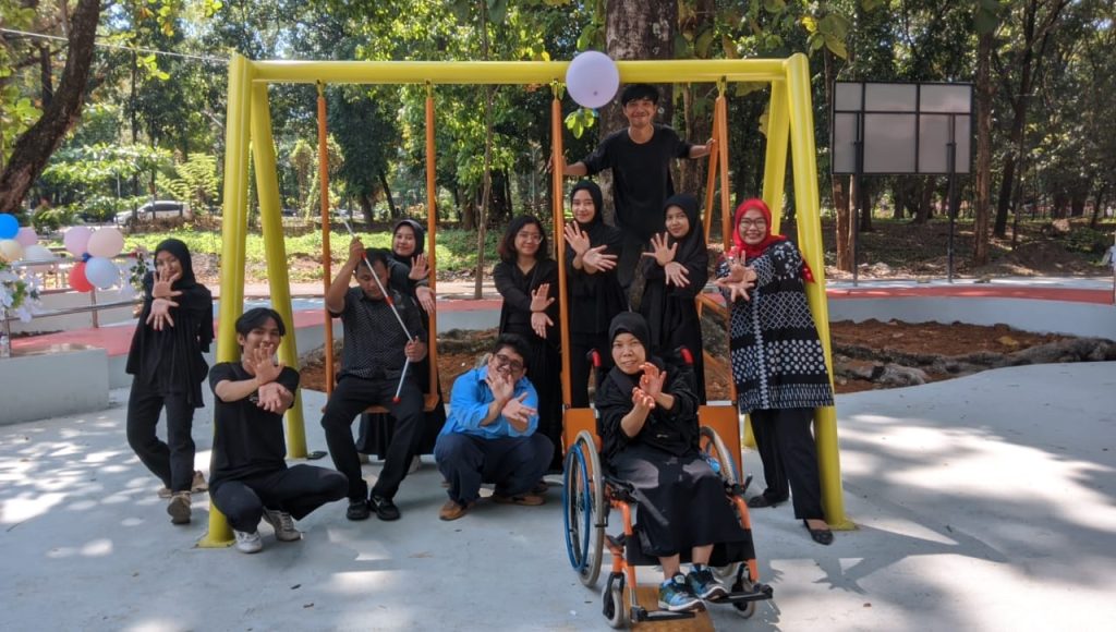 Dalam tarian itu, teman-teman disabilitas menunjukkan pentingnya aksesibilitas seperti jalan dengan guiding block, ayunan untuk orang berkursi roda, serta ramp yang landai dengan warna cerah untuk orang dengan disabilitas fisik dan low vision.
