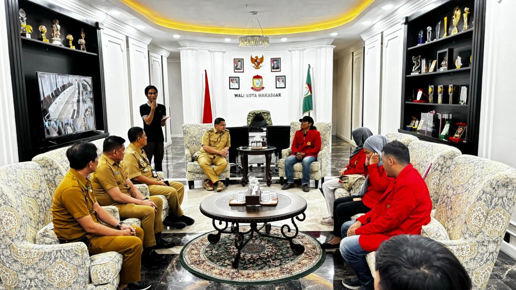 Ruang audiens ini cukup berwibawa menurutku. Mungkin karena ini pengalaman pertama bisa audiens dengan walikota Makassar, maka suasanya memang resmi betul. Saya diminta duduk di samping Pak Walikota yang diapit dengan meja kecil berisi gelas kristal kosong Cerek kaca, dan satu potong kue katirisala dan satu potong bolu kecil. Kami menghadap ke audiens dari Pusdis dan Dinas Sosial. Saya memulai dengan perkenalan diri tentang Pusdis dan bebrapa perkembangan menarik di dunia disabilitas di Perguruan Tinggi.